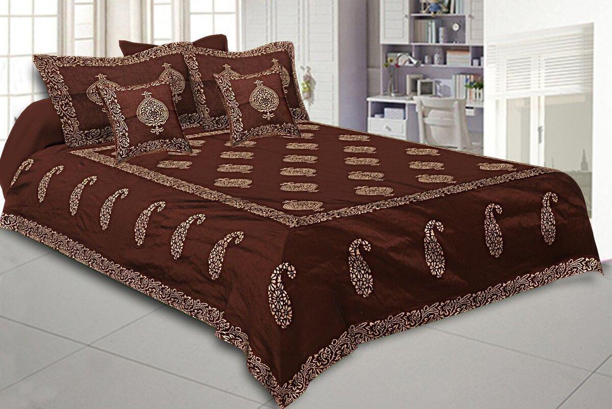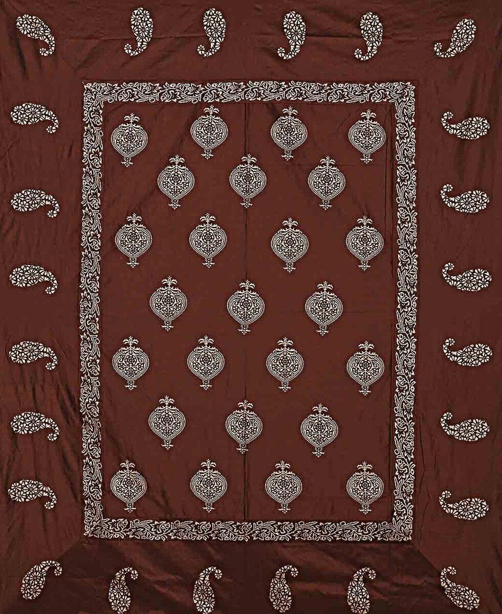 King Size Bedsheet Brown Paisly Border Khadi Print Bedsheet, Indian Bedsheet, Home decor Silk Double Bedsheet, Brown Base Khadi Print Hand Work Double Bedding Sheet