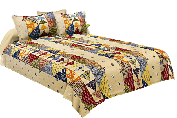 This beautiful pastel color bedsheet set comes with applique artwork on it that has emerged from the Barmer District of Rajasthan. The exquisite printed patchwork pattern design finished with an excellent stitch makes this bed sheet a must-have for your bedroom. The gorgeous multi-color barmeri print bedsheets will easily match any room decor – whether it is modern, chic, contemporary, vintage, or others. The bedsheet has a smooth finish and is light in weight and can be used on a daily basis.