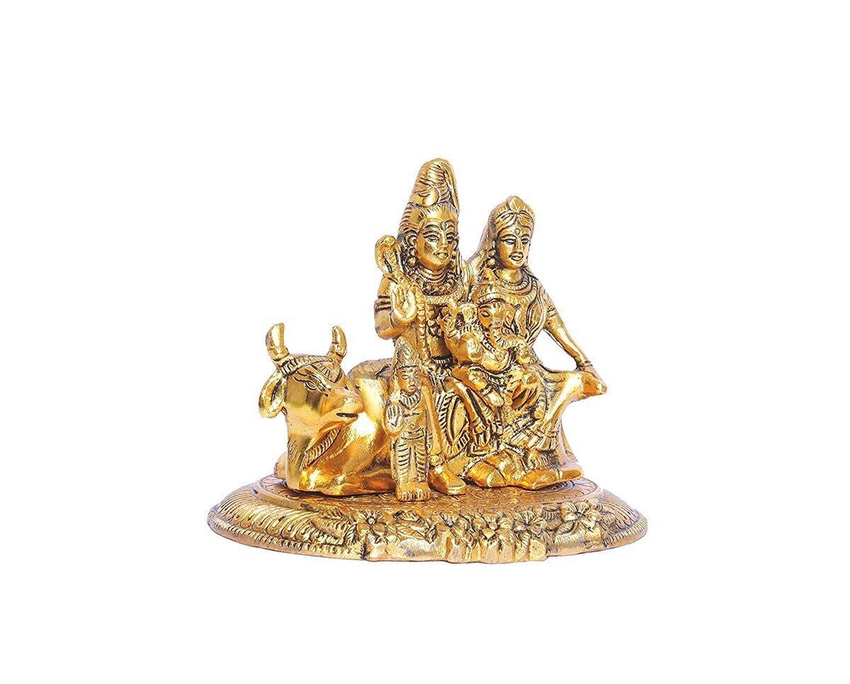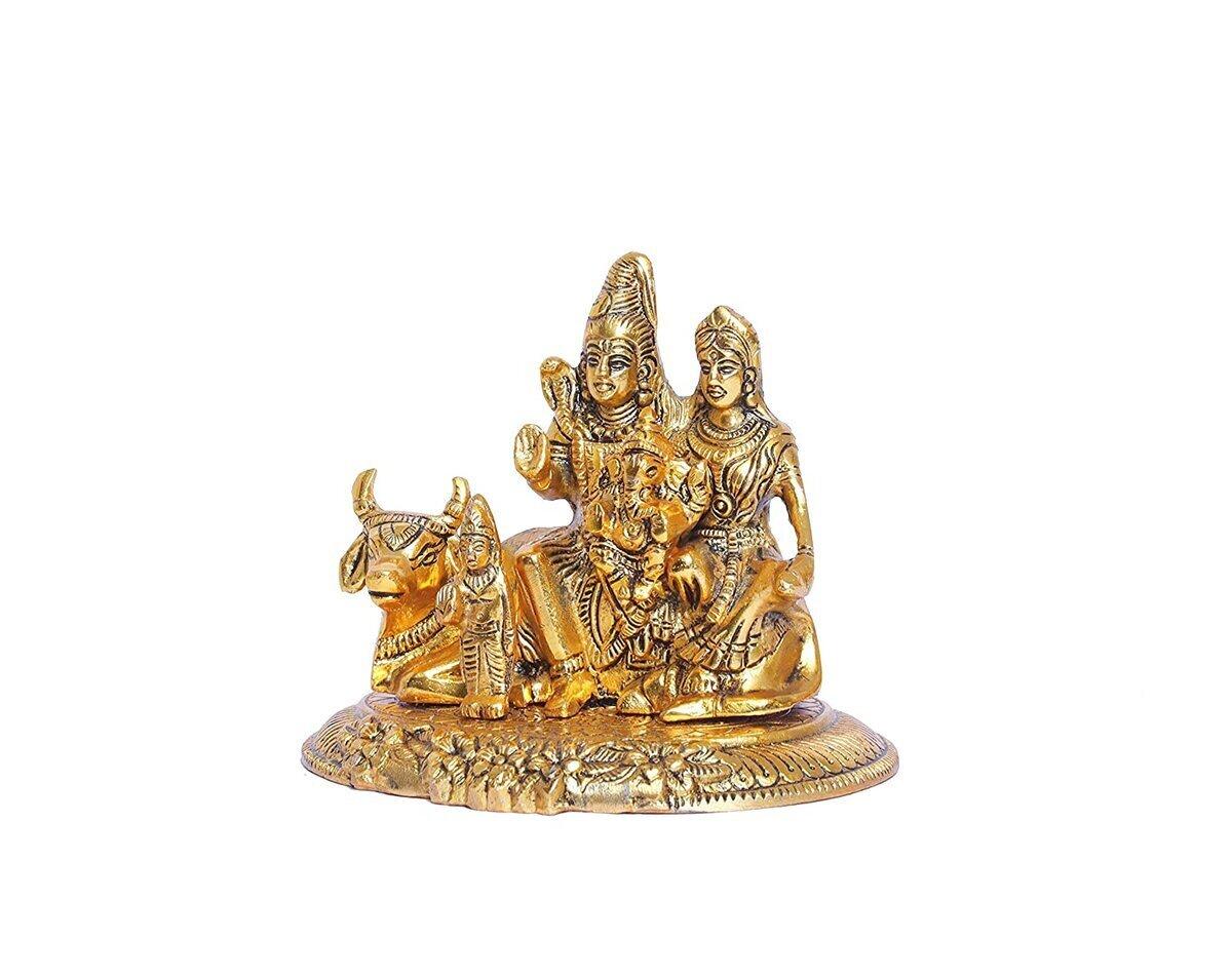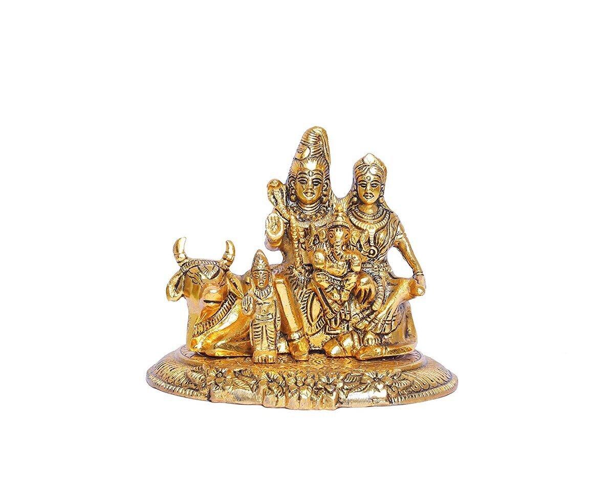 Metal Golden Shiv Parivar (Shiv Parvati). Shiv Parvati (Shiva Parivar) is gold plated with an antique finish so looks very beautiful and use for the purpose of worship and for home decoration.