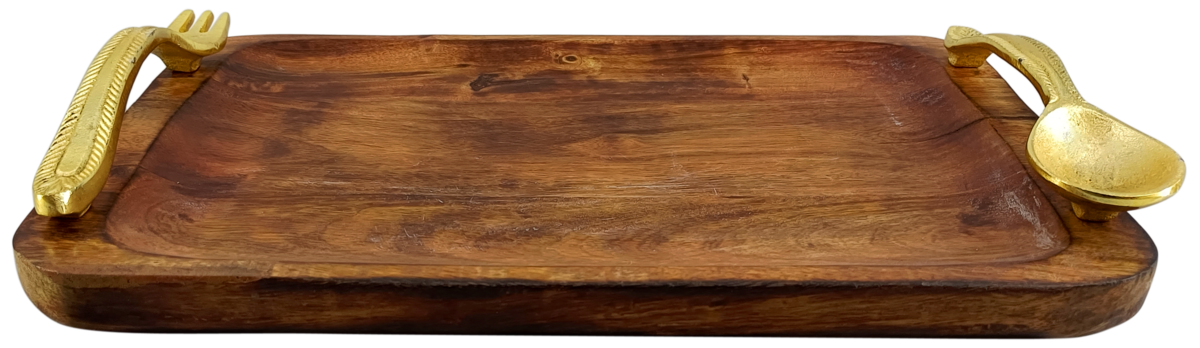 • Colour Finishing: Wood Polished on Tray and Golden Plated over Handles