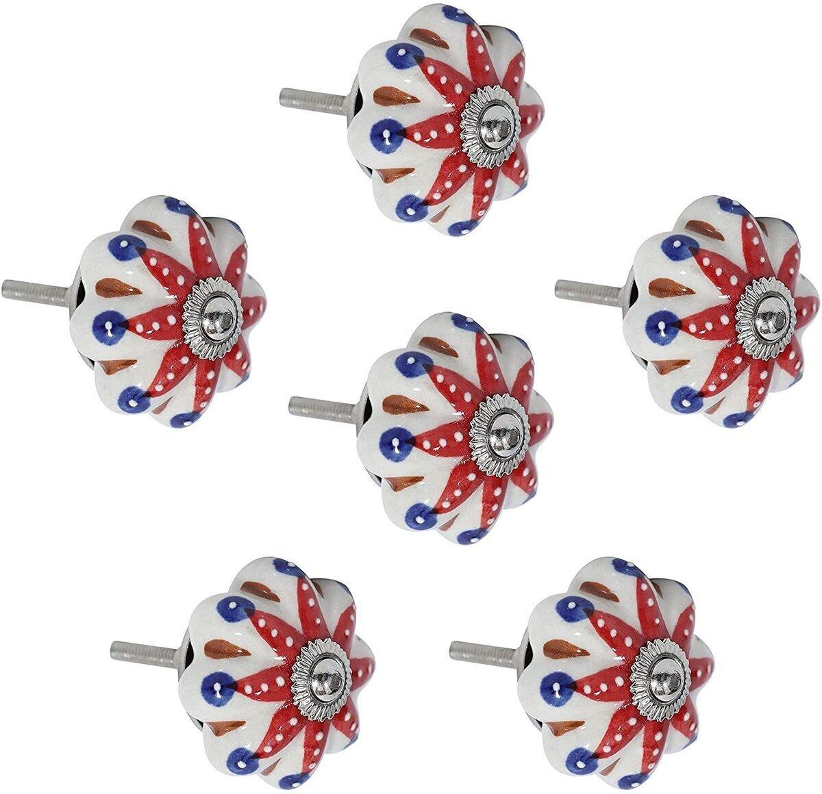 Flat Ceramic Knobs Door Knobs Kitchen Cabinet Drawer Pulls Hardware Knobs Cabinet Knobs Drawer Knobs (Cottage, Set of 6)
