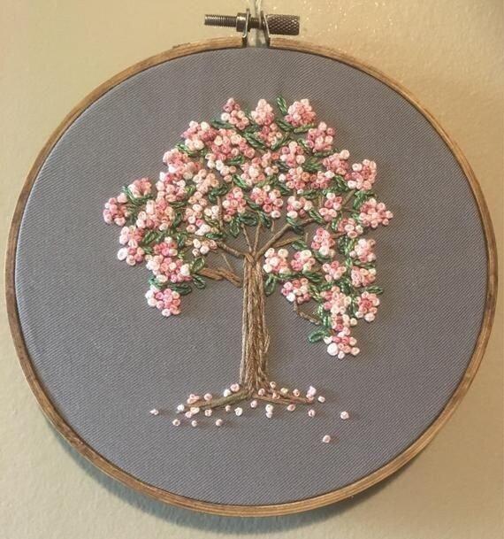 Floral Tree Embroidered Hoop - Wood Decorative Display Frame - Hand Embroidered Decorative Frame - Wall Hanging - Modern Fiber Art - Embroidery Hoop - Wall Decor - Gift Item