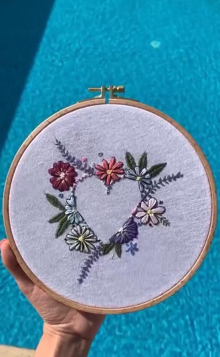 Hand Embroidered Decorative Frame, Hoop Art Frame, Round Wooden Frame wall hanging, Round frame to hang, Flower Heart Embroidery Hoop Wall Decor, Gift Item