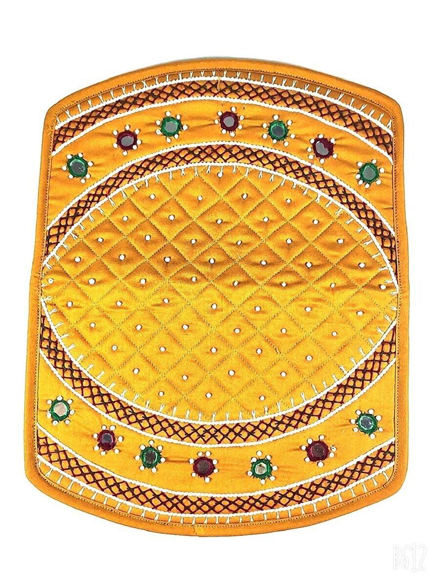 SriShopify Handcrafted Women's handbag, Cotton handmade Hand Purse, ladies wallet (Medium size, Yellow Color, Mirror, Beads and Thread Work Handcraft), Envelope Clutch