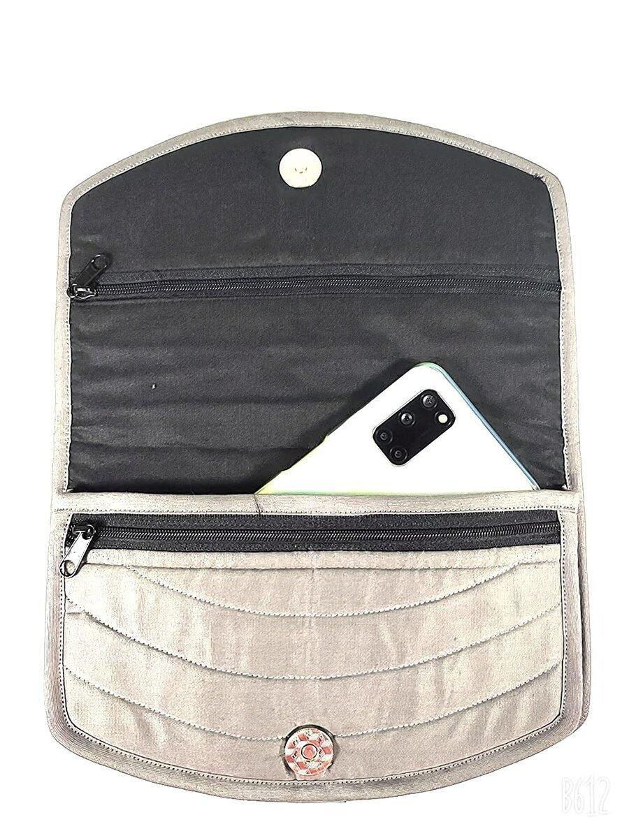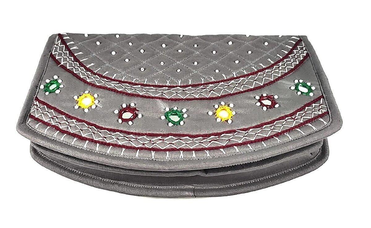 SriShopify Handicrafts Women Hand purse Banjara Designer Clutch for Girls, Cotton handmade ladies wallet Medium 8.5 Inch, Grey, Original Mirrors Beads and Thread Work