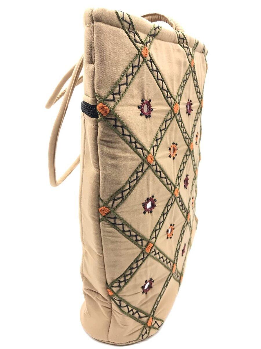 - (Material) A soft high quality Cotton (Poplin Fabric) with heavy duty zipper bag. A Piece of Art, Banjara Embroidery , With tiny Mirrors, Beads , Shells and Colourful Thread work called Traditional Banjara needle craft . When you touch the bag feel smooth, Craft Design on Both side, easy to wear and carry
