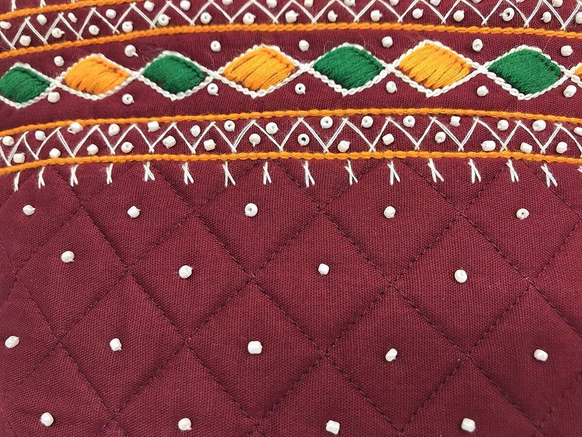 - (Material) A soft high quality Cotton (Poplin Fabric) with heavy duty zipper bag. A Piece of Art, Banjara Embroidery , With tiny Mirrors, Beads , Shells and Colourful Thread work called Traditional Banjara needle craft . When you touch the bag feel smooth, Craft Design on Both side, easy to wear and carry