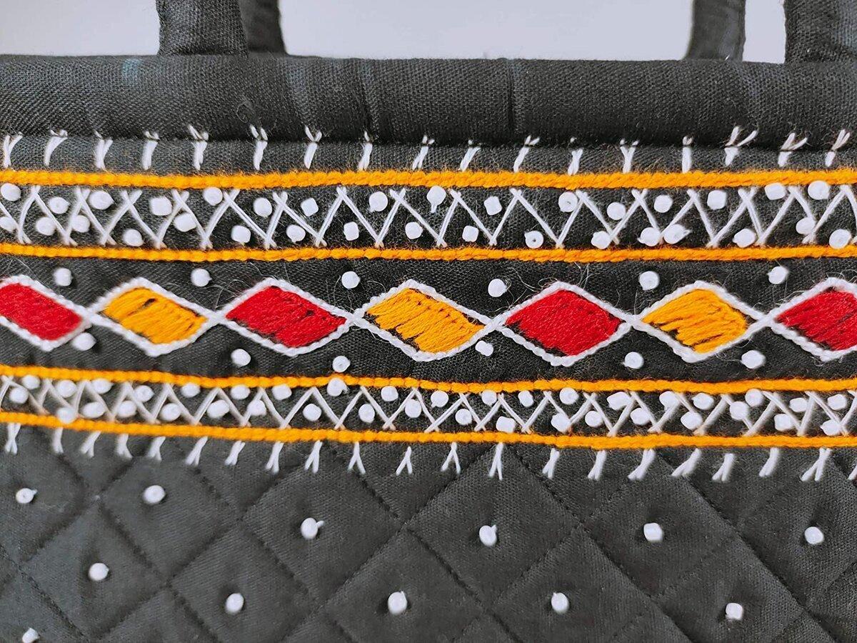 - (Material) A soft high quality Cotton (Poplin Fabric) with heavy duty zipper bag. A Piece of Art, Banjara Embroidery , With tiny Mirrors, Beads , Shells and Colourful Thread work called Traditional Banjara needle craft . When you touch the bag feel smooth, Craft Design on Both side, easy to wear and carry