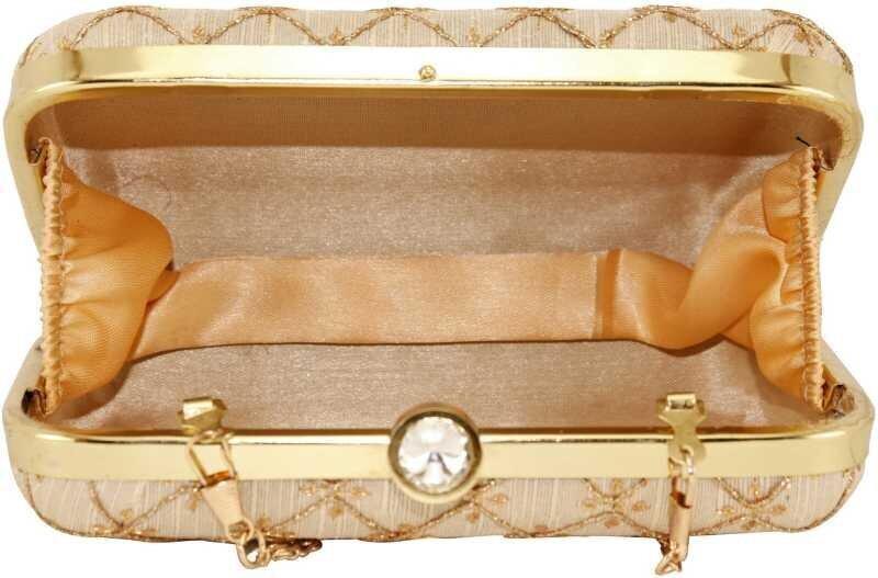 CLUTCH BAG PURSE | INDIAN HANDCRAFTED EMBROIDERED ETHNIC WOMEN'S HANDBAG | BRIDAL Clutch | CASUAL bag | PARTY handbag | WEDDING purse | Beige & Golden Clutch