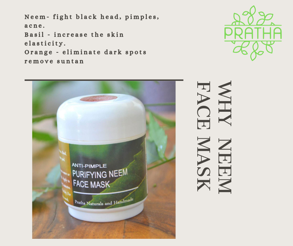 Pratha Anti-Pimple Purifying Neem Face Mask | Neem, Green tea, Basil, Orange peel, Pomegranate peel | Anti bacterial property | Handmade Neem Face pack | Reduce Acne and Pimple |