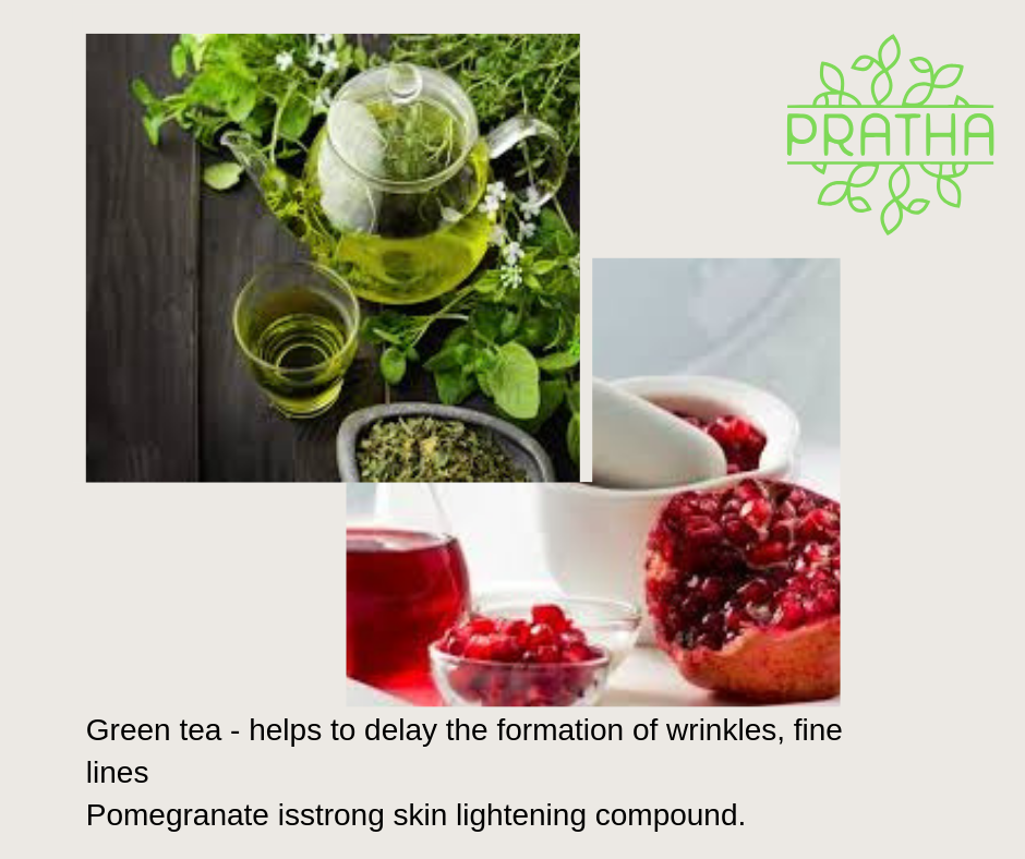 • Green tea contains high concentration of anti-oxidants, which helps to fight against free radicals in the body. As a result, it helps to delay the formation of wrinkles, fine lines