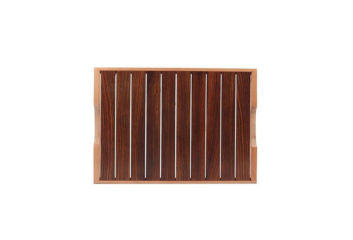 Constructed from premium quality wooden material, this tray is highly durable in nature. This tray is very elegant in design with strips on the surface that add a distinctive & classy touch when kept on the dining table. The handles are given a curved finish which reflects sophistication. These trays make serving tea, snacks, coffee, finger foods, cakes cheeses, bread & crackers great for parties & events. This wooden tray is ideal for serving food, decorating your home & cutting clutter in any space. The wooden tray is heat resistant so that you can serve hot tea & other hot snacks without any trouble at all. It provides a perfect touch to your kitchen & dining collections.