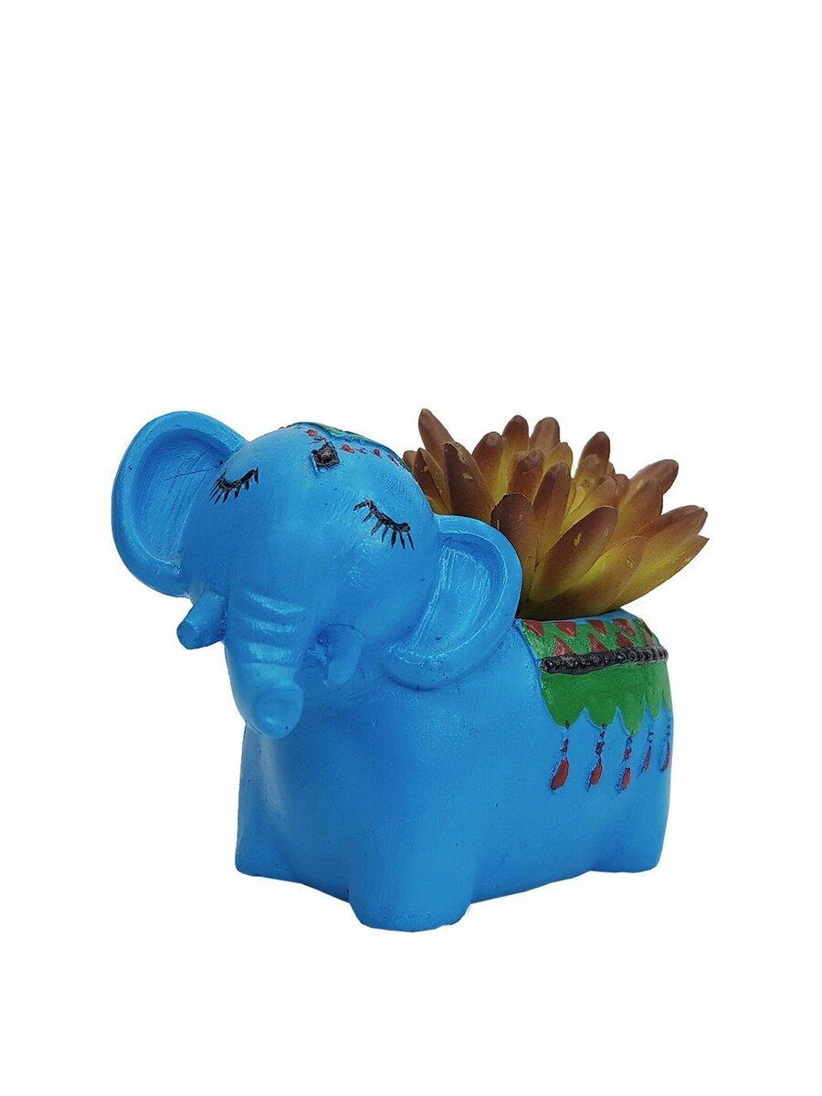 Pratibha Art Elephant Indoor Pot, Cute Elephant Small Planter, Blue & Green Elephant-Shaped Planter, Baby Elephant Resin Planter Pot, Mini planter pot