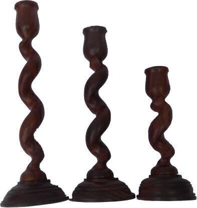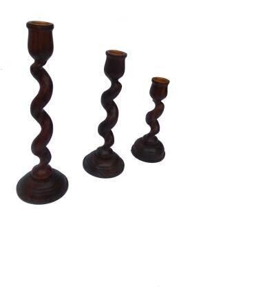 Handicraft SHEESHAM WOOD STAND Wood Candle Holder Set (Brown, Pack of 3)