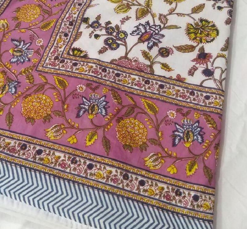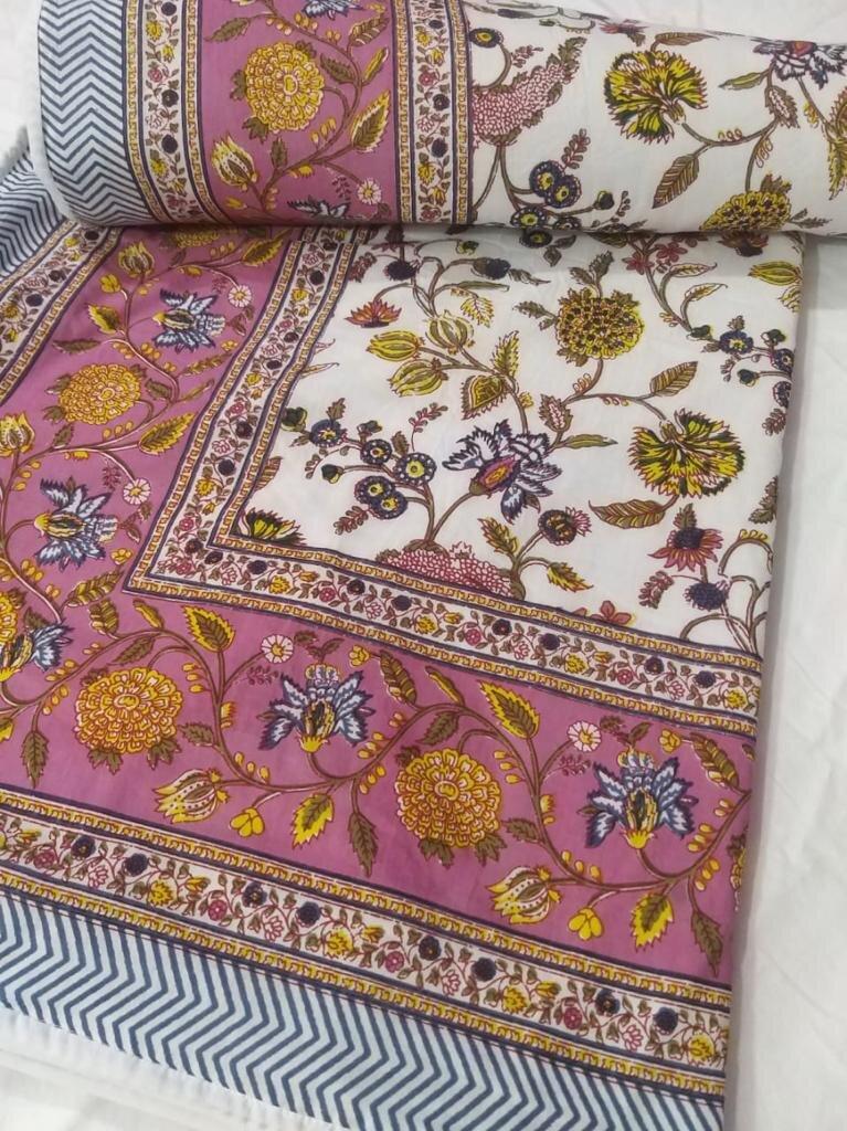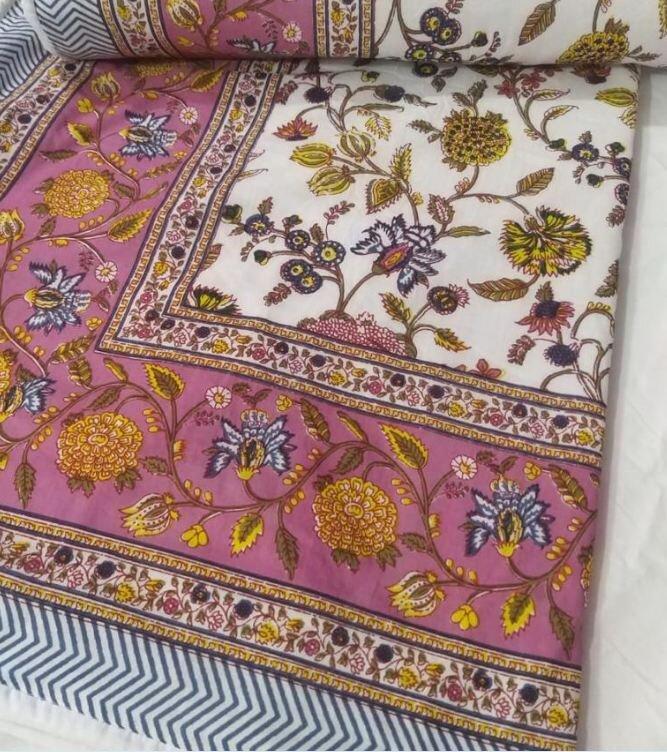 Indian Reversible Cotton Dohar, Hand Block Printed Cotton Dohar, Soft Cotton Dohar, King Size Dohar, Pink Kantha Dohar