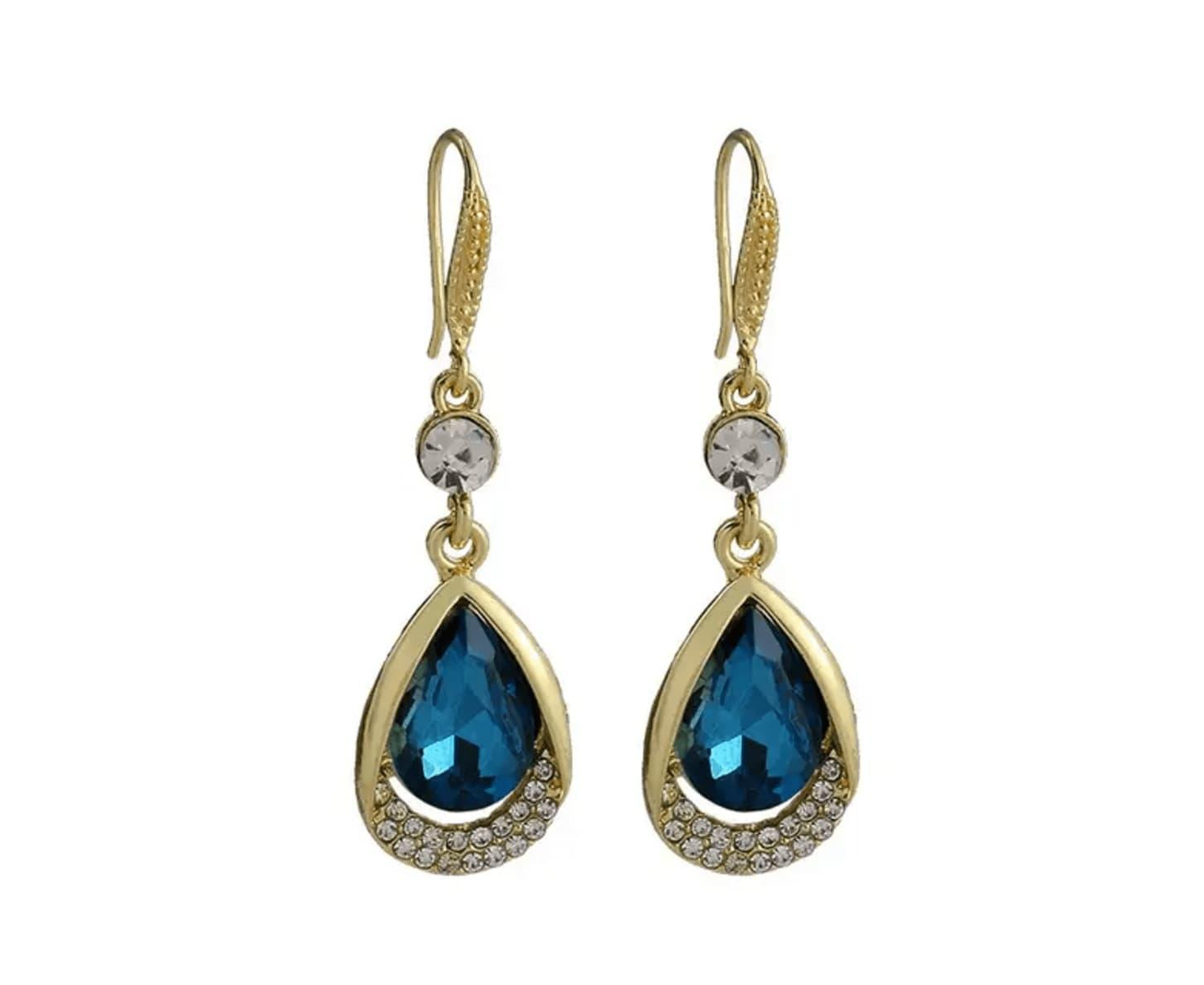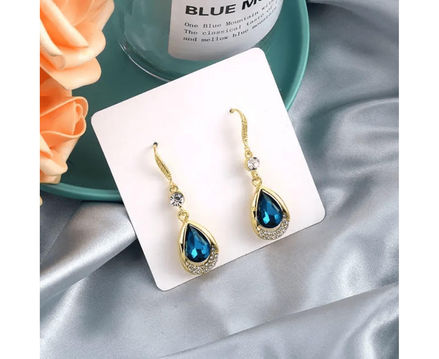 Blue Teardrop Earrings for Women & Girls | Korean Style Gold-Plated Dangle Jewelry