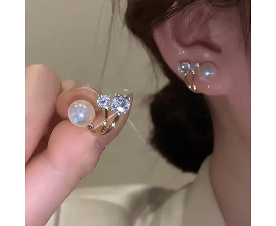 Stylish Korean Earrings for Women | Gold-Plated Pearl & Zircon Alloy Studs