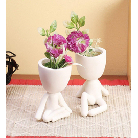 Handmade White Yoga Planters Pot | Combo Pack set of 2 | Perfect Pot for Garden, Desktop, Table Organizer, Home Decor, Balcony, Kids Room or a Gift