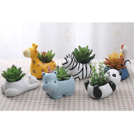 Handcrafted Modern Kawaii shaped Animal Planters | Combo Set of 6 Custom Painted Pot | Decorated Flower Pots
