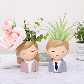Handcrafted King and Queen Combo Planter Pot Set, Beautiful Abstract Human Face Flower Pots