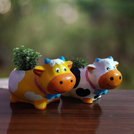 Handcrafted Cute Cow Succulent Pots, Set of Cute flower pot, planter pot, Planter, Custom Painted Pot, Decorated Flower Pots, Animal Shaped Planter