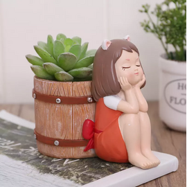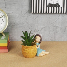 Cute Girl with Back Basket Pot, Girl Succulent Planter, Girl Flower Pot, Mini Planter, Pots for plant, Girl Planter, Succulent Pots, Cactus Planter, Bonsai P...