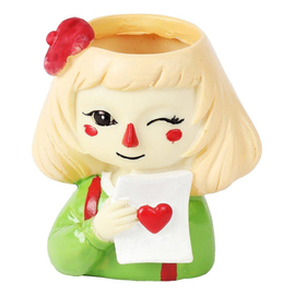 Handcrafted Cute Winking Heart Girl Planter Pot/Succulent Pot Planter with Drainage Hole/Flower Pot/Small Tiny Plant Pot in Cute Shape