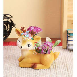 Beautiful Winking Deer Pot | Vintage White Deer Planter | Polyresin Animal Planter | Ceramic Deer Vase | Sitting Planter | Kitchy Home Decor | Succulent Planter
