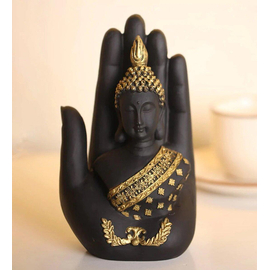 Black Buddha In Hand Showpiece, Hand Made Buddha Head, Buddha Meditating Head Statue, Black Resin Buddha Head, Buddhist Altars & Shrines, Unique Palm Budha f...