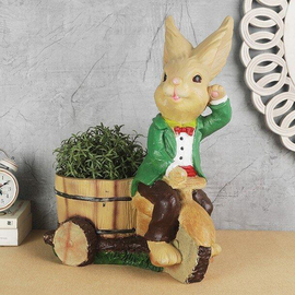 Handcrafted Rabbit on Cycle Planter Medium Bunny Planter, handmade flowerpot, handmade rabbit planter, rabbit gift, cacti planter, succulent planter, sweet d...
