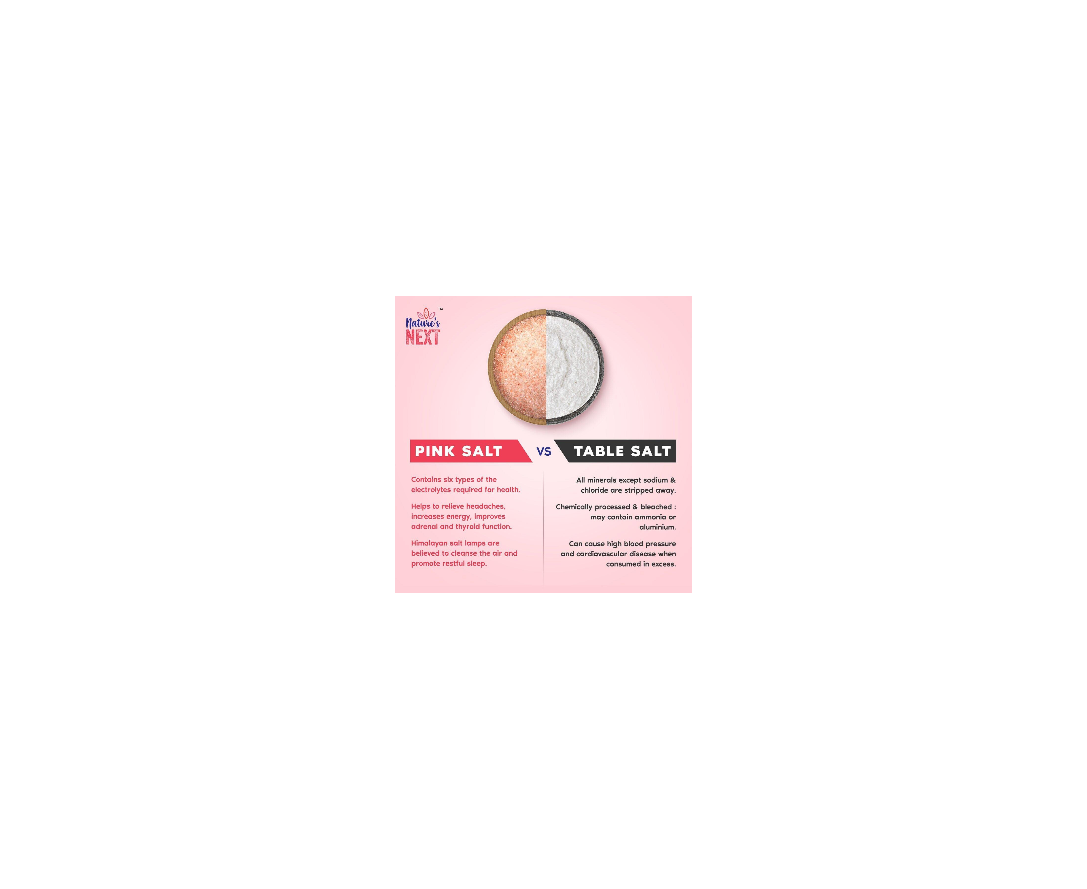 Himalayan Pink Salt is harvested from the heart of the Himalayan Mountains. Formed over the last 250 million years, it is considered the purest salt in the world as it is virtually free of pollutants and toxins. Made from the finest quality, organically and ethically sourced pink salt from the Himalayas, Himalayan salt is well known for its amazing health benefits. It re-mineralizes the body with minerals and trace elements essential to our health and well being. The Himalayan pink salt is rich in trace minerals - including Calcium, Magnesium, Potassium, Copper and Iron. It is the perfect addition to any meal and great for seasoning meats, grilled vegetables, a variety of salads (such as pasta, egg or potato salads), soups, snacks. Besides, it blends well while baking. Key Ingredients: Himalaya Pink salt Key Benefits: