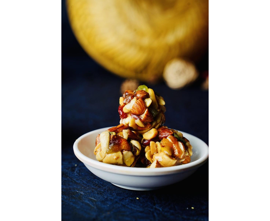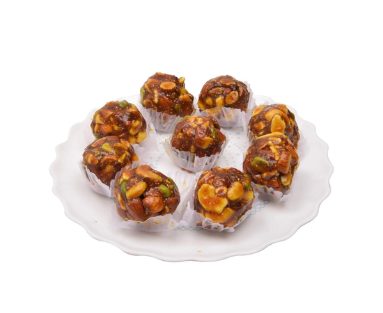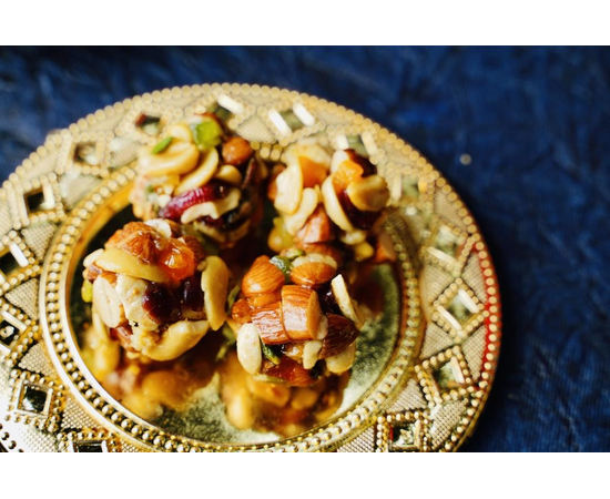 Unlike traditional refined sugar laddus, this version is naturally sweetened with dates, figs, raisins, and honey, ensuring a guilt-free indulgence. Almonds, cashews, walnuts, and pistachios combine to provide a crunchy texture, while cardamom adds a mild aromatic flavor.