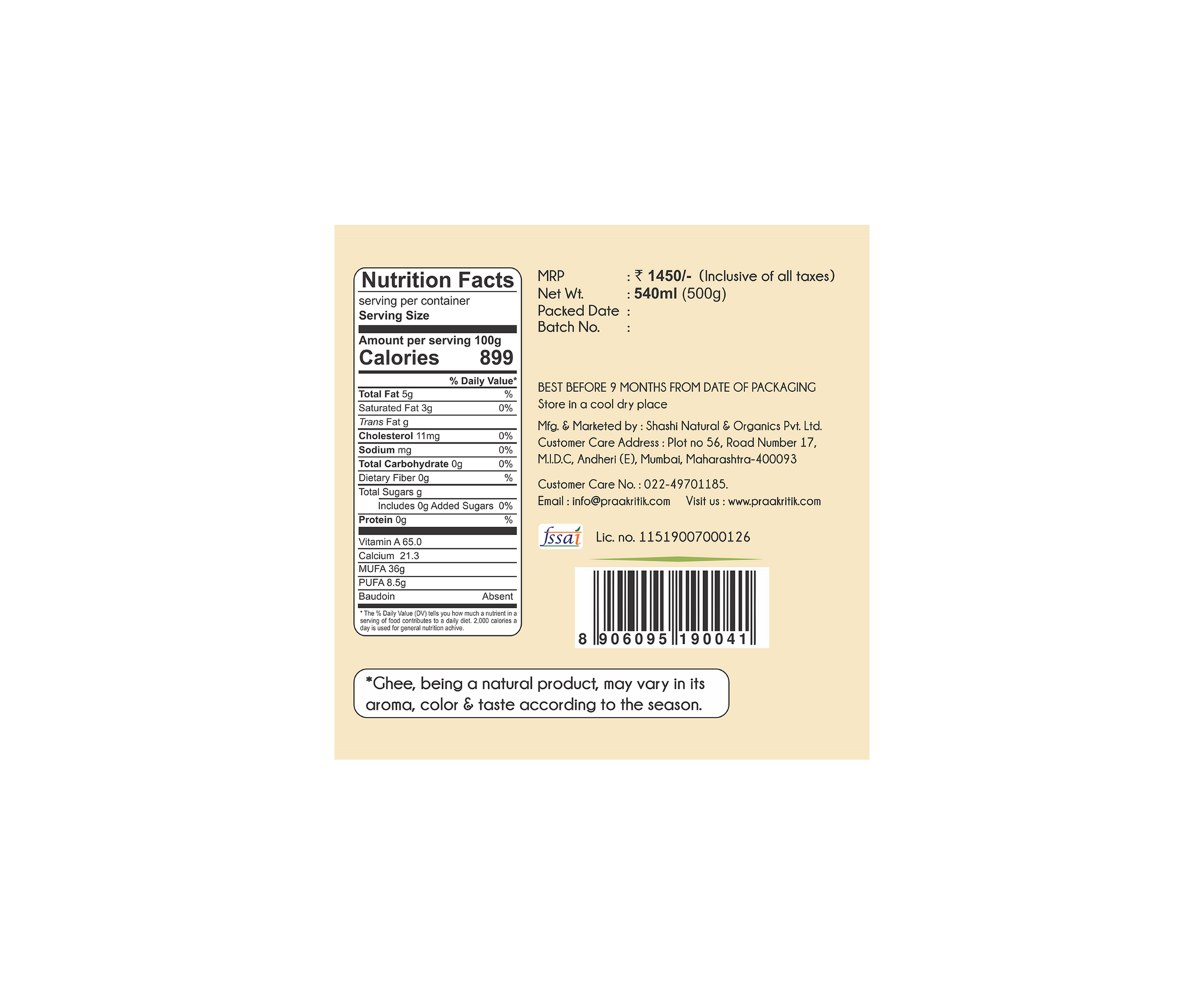 • Package Content: 450 gm of Natural desi gir cow ghee