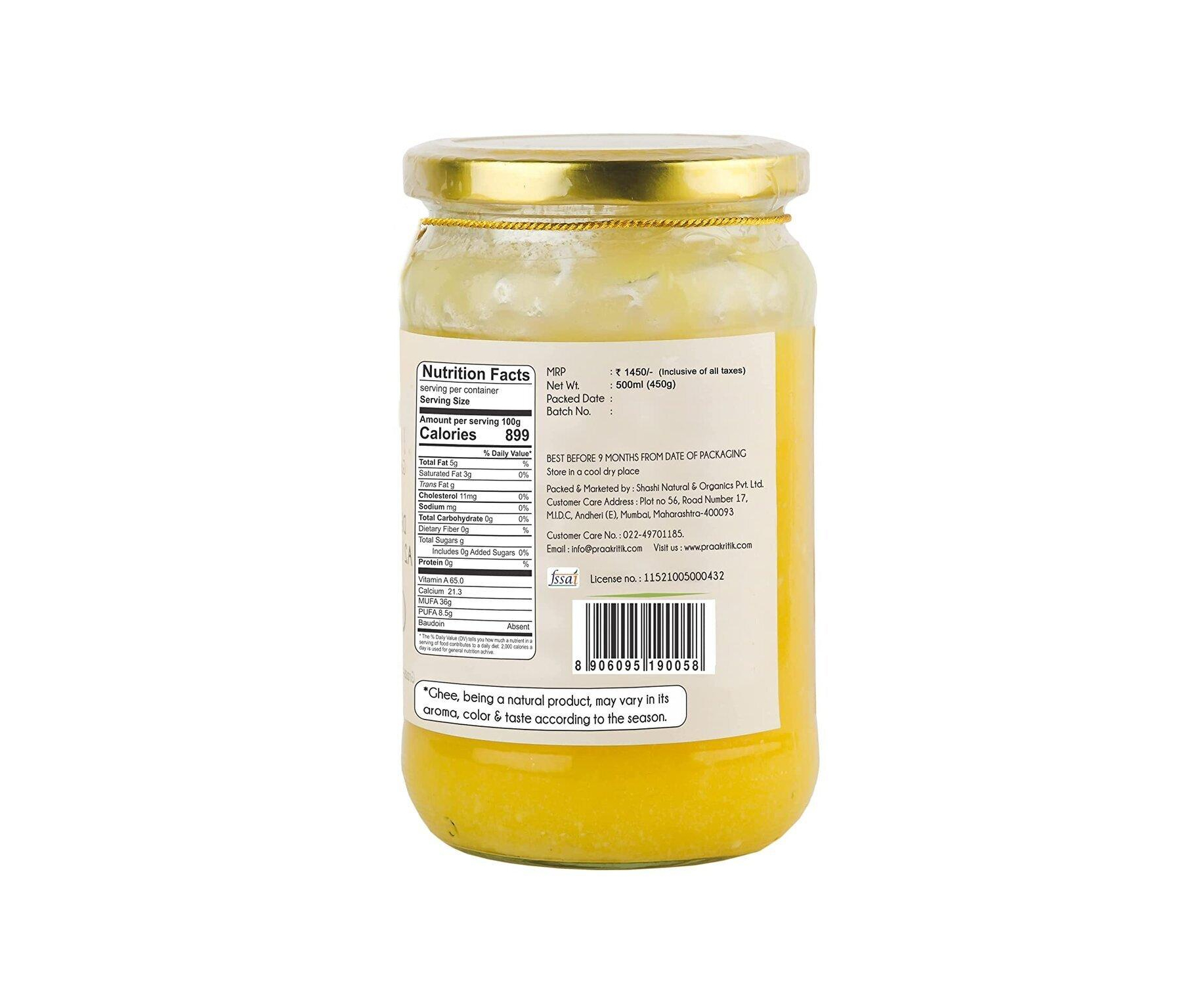 Praakritik Natural Desi Gir Cow Ghee – 100% Vegetarian, Cultured Using Traditional Bilona Method, Non-Preservative, Rich in Nutrients Clarified Butter – 500 ml