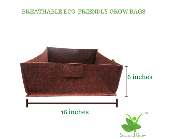 Air Pruning Geo Fabric Grow Bags || 500 GSM || Grow Bags for Growing Vegetables, Fruits Leafy Vegetables, Flowers & Herbs in Home, Terrace, Balcony || Size 16 x 16 x 6 inches || Set of 2