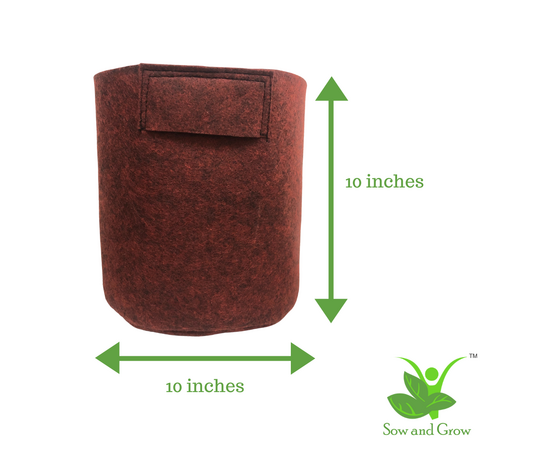 Geo Fabric Grow Bag Size 10 x 10 inches || Heavy Duty 500 GSM || For Terrace Garden - Grow Vegetables, Flowers, Herbs || Set of 5