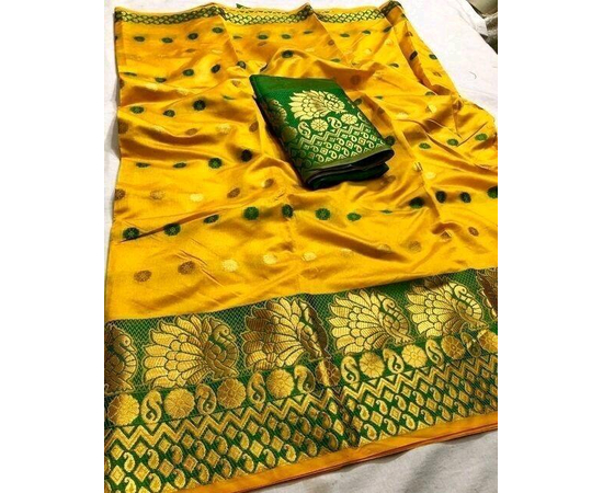 YELLOW COLOUR ART SILK SAREE WITH MULTIPAL BLOUSE