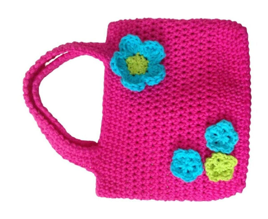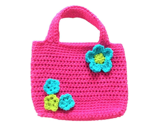 Handmade Crochet Purse/Pink Purse with Flowers/Crochet Bag/Flower Appliqués Crochet Pattern (16 INCHES)