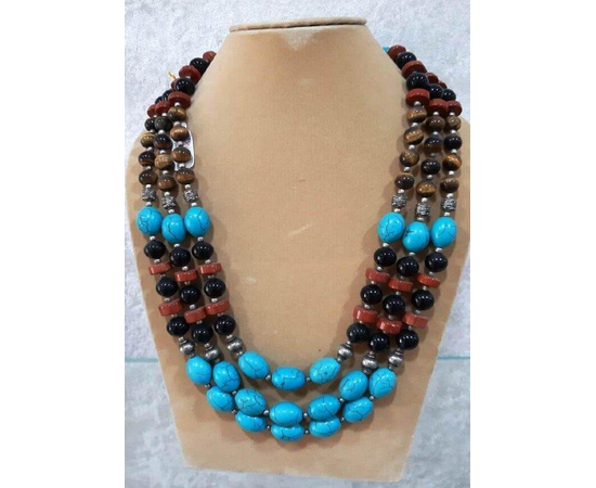 Gemstones: Turquoise(Firoza), Red Jasper, Black Onyx, Tiger's Eye With German Silver beads