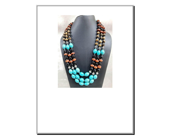 Natural Multi-Stone Three layered string Necklace Ethnic jewelry