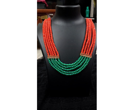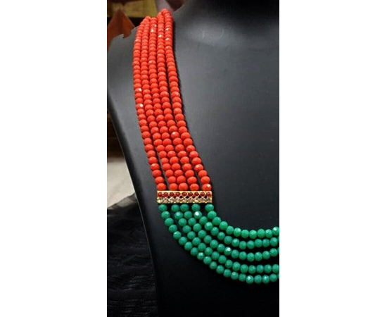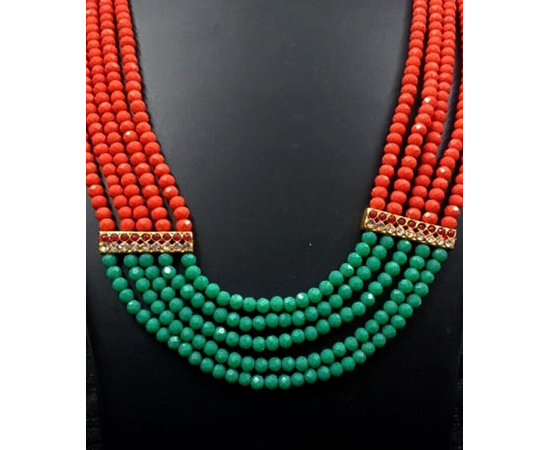 This necklace is an exquisite piece of jewelry which cannot go unnoticed from fashion jewelry lovers. this unique piece is made of multi layers of Green & Orange beads, attached with stones studded golden clips on the both sides. This exclusively gorgeous necklace will surely make you a center of attraction at any occasion. This stunning piece of jewelry is your one stop destination for making any given day an occasion. We understand that your jewels are more than just accessories .They are an extension of your personality. Order online with 100% satisfaction guaranteed. Perfect wear for any occasions.